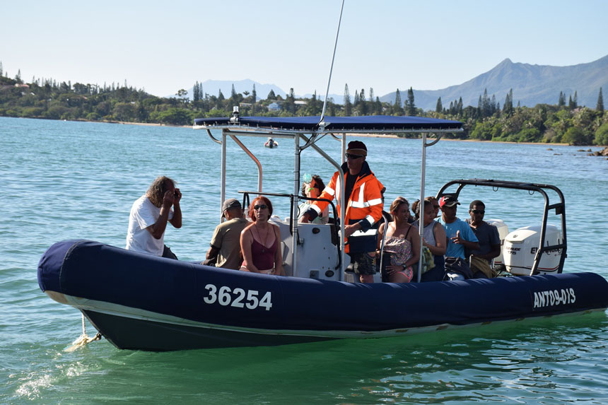 Mise à l'eau des Dauphins, ce dimanche, en fin d’après-midi. Piloté par Marc Negrello, du taxi-boat Casy Express, un bateau réquisitionné en navette maritime quitte le Vallon-Dore avec à bord une famille dont le bébé doit être hospitalisé ce lundi, deux jeunes de Yaté qui doivent reprendre l'internat à Nouméa et à Païta, un couple parti camper à la Netcha… (Photo F. T.)