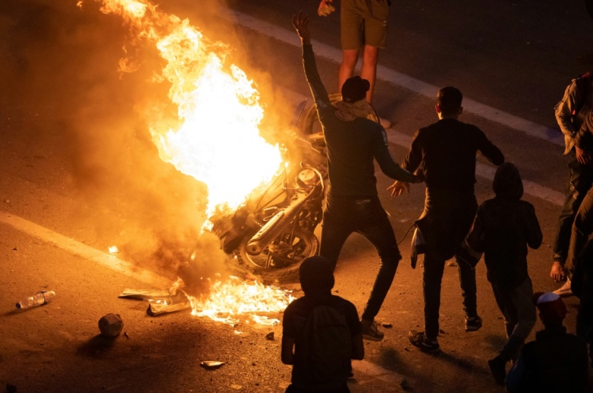 Des migrants marocains brûlent la moto d'un responsable local de sécurité, à Fnideq, à proximité de la frontière avec l'enclave espagnole de Ceuta, le 19 mai 2021 FADEL SENNA [AFP]