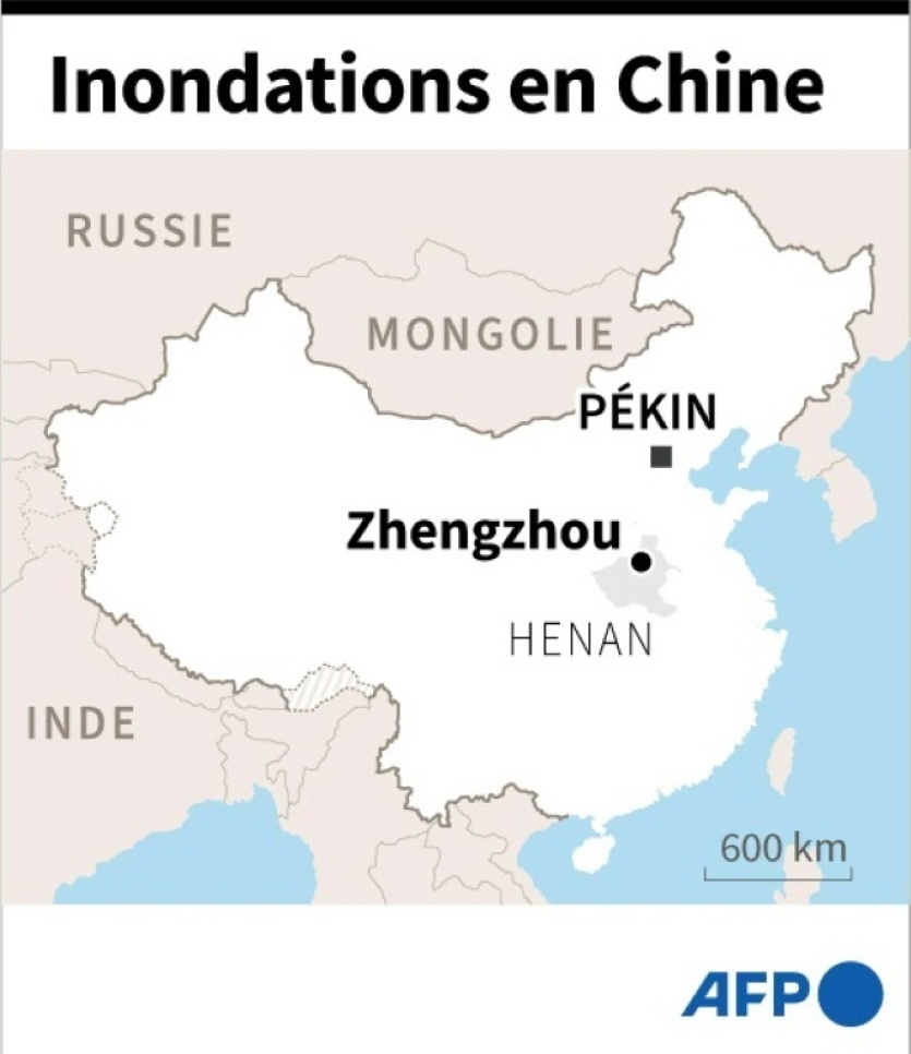 Inondations à Zhengzhou, dans le centre de la Chine, le 21 juillet 2021 Noel Celis [AFP]