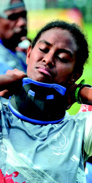 Lysiane Moto était sur le bord du terrain samedi pour encourager ses partenaires. Après son choc de la veille, l’équipe médicale évoque une suspicion de fracture d’une cervicale.