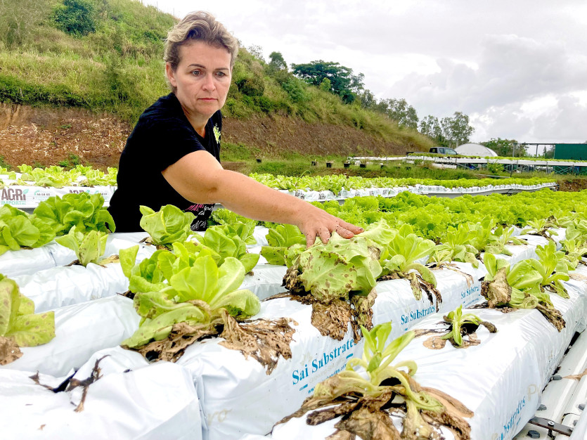 - A.T. | Crée le 13.04.2022 à 18h15 | Mis à jour le 13.04.2022 à 18h21ImprimerDominique Burguière, qui a lancé son exploitation hors sol l’Univert, à Bourail, est "épuisée" de devoir jeter ses salades. Photo Anthony TejeroLes très fortes pluies, notamment générées par la dépression tropicale Fili ont encore ravagé les cultures.