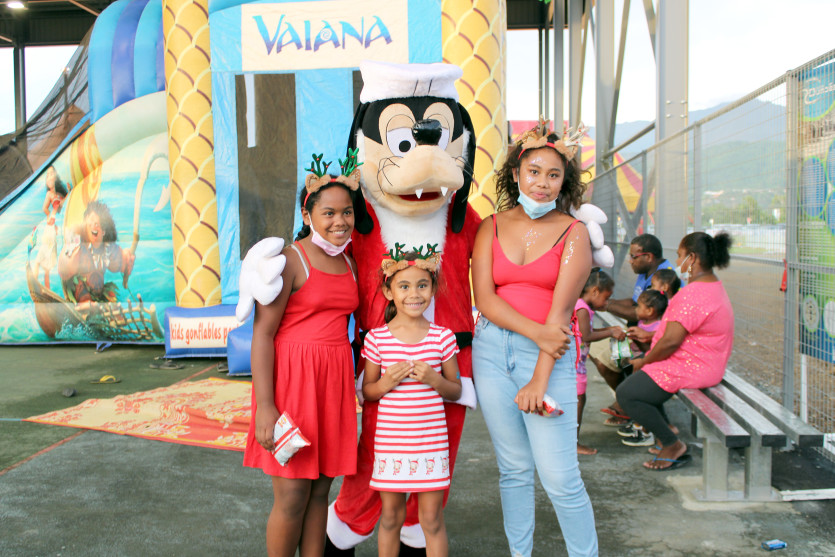 Des séances photos avec Dingo et d’autres personnages Disney étaient prévues pour l’occasion à Dumbéa. Photo Edwige BlanchonÀ Dumbéa, le père Noël est arrivé dès 18 heures pour le plus grand plaisir des familles réunies au complexe sportif de la commune.