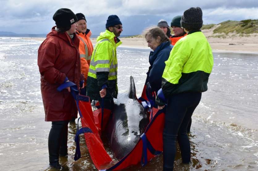 Depuis le début de la semaine, les sauveteurs ont bravé la pluie qui n'a pas cessé de s'abattre, des vents violents et des eaux glacées, à raison de plusieurs heures par jour, pour tenter de sauver un maximum de globicéphales qui luttaient pour leur survie.