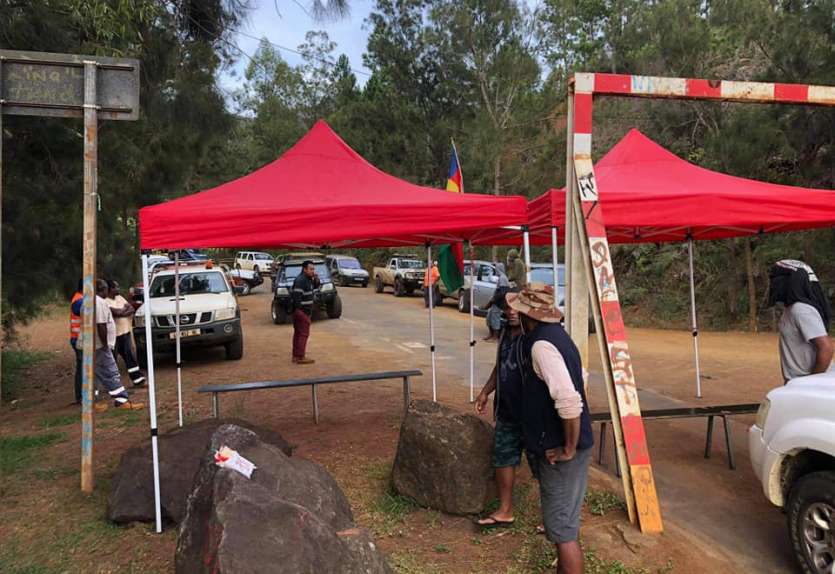 [9h25] L'accès à la mine de N'Go, situé à quatre kilomètres environ après le pont de la rivière des Pirogues, en direction de Prony, est également bloqué.