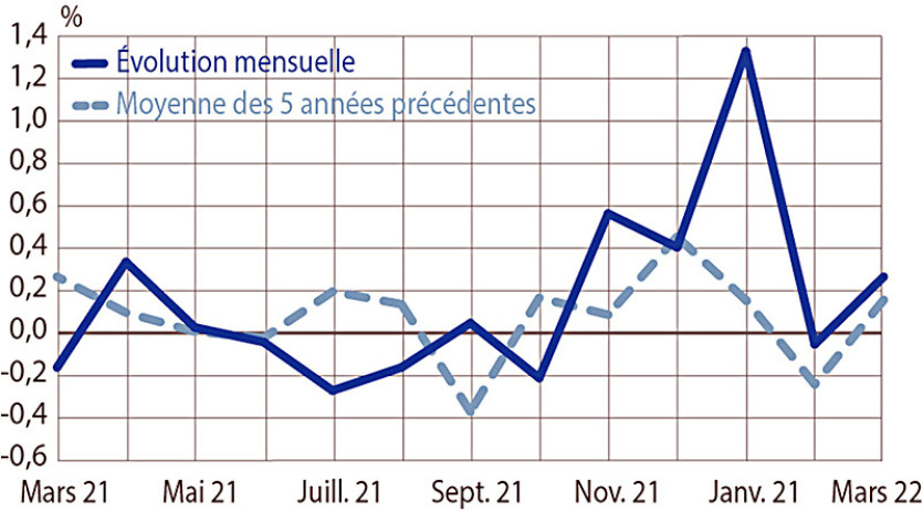 Dans le détail, cette hausse est expliquée par l’essor des prix de l’énergie (+2,9 % contre-1,5 % en février). La faute aux carburants. Les tarifs grimpent de 5,7 %. "Le prix à la pompe d’essence s’affiche à 159 F/L contre 151 F/L le mois dernier, et celui du gazole à 138 F/L contre 129,30 F/L en février", précise l’Isee.