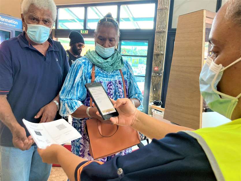 - | Crée le 11.02.2022 à 12h10 | Mis à jour le 11.02.2022 à 16h27ImprimerContrôles des QR code des pass sanitaire à l'érodrome de Magenta, par la compagnie Air Calédonie. Vols vers les îles. Photo Anthony TejeroLe gouvernement a décidé de se calquer sur la Métropole.