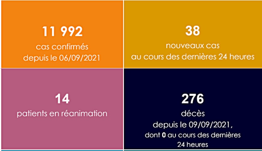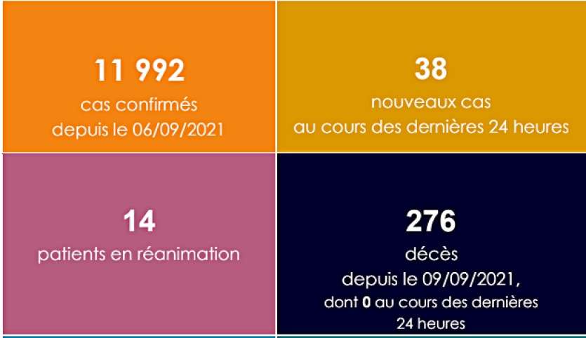 Ces nouveaux cas comptabilisés portent à 11 992 le nombre total de cas positifs avérés depuis le lundi 6 septembre. Le nombre de cas actifs est de 419.