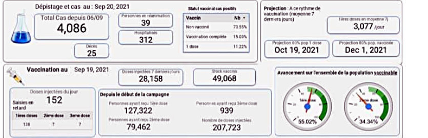 En chiffres. Source clinique Kuindo-MagninSix patients ont pu sortir de réanimation, tous vaccinés. " Nous avons triplé les gardes ce week-end. C’est une activité énorme au CHT, un dévouement énorme. Il faut que la population comprenne la gravité de la situation."