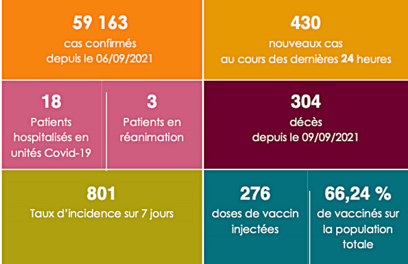 Depuis mardi 8 mars, à 14 heures, aucun décès supplémentaire n’est à déplorer. 304 personnes ont succombé à la Covid-19 depuis le 9 septembre.