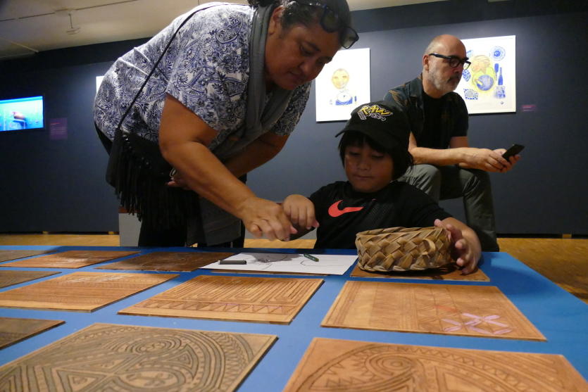 - Gilles Caprais | Crée le 19.12.2020 à 12h00 | Mis à jour le 19.12.2020 à 19h21ImprimerDans la salle d’exposition, les enfants peuvent reproduire les motifs anciens. Photo G.C.Fruit de longs échanges entre artistes plasticiennes et archéologues, l’exposition Art > Ikeo a été inaugurée ce samedi matin au Centre culturel Tjibaou, par la province Sud et l’Agence de développement de la culture kanak (ADCK), en présence des trois artistes, qui resteront sur place jusqu’au soir.