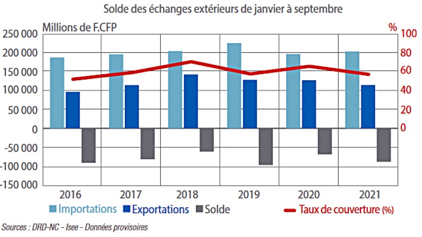 L’Isee relève que les exportations "sont soutenues par les ventes de minerai et des cours favorables" et que les importations "sont soutenues par l’activité industrielle et la gestion de la crise Covid".