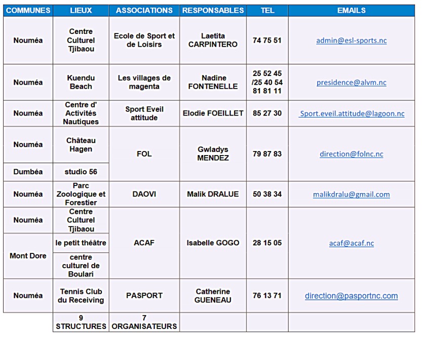 Pour inscrire leurs enfants, les parents doivent contacter directement les structures, indiquées dans le tableau ci-dessous.