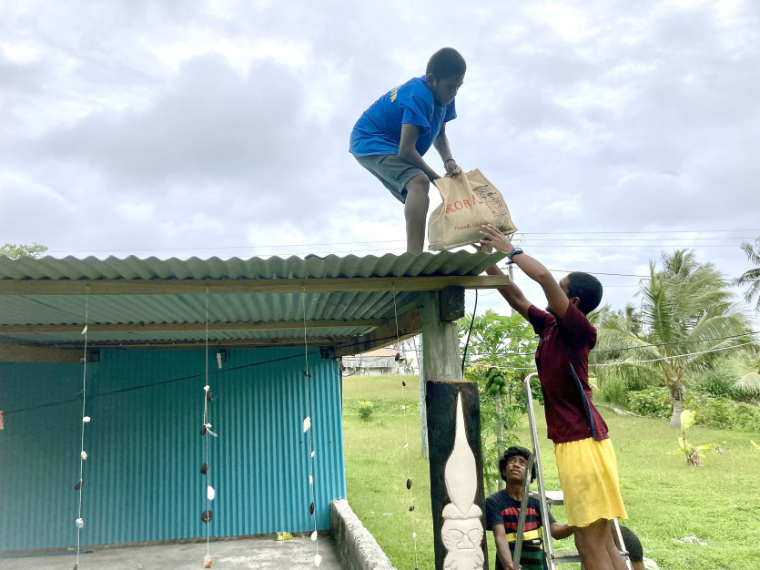 [15h48] À Lifou, les habitants se préparent à l’arrivée de la dépression tropicale forte Ruby, en sécurisant leur maison de bord de mer.
