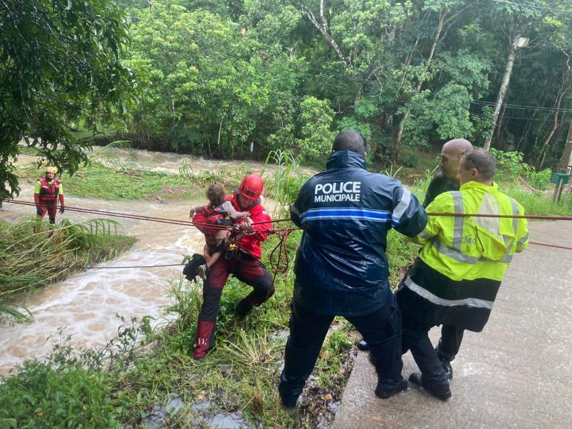 [14 heures] A Yahoué, quatre personnes, dont deux enfants, ont été secourues par l'équipe de sauvetage en eaux vives de la Sécurité civile, appuyée par les pompiers et la police du Mont-Dore.