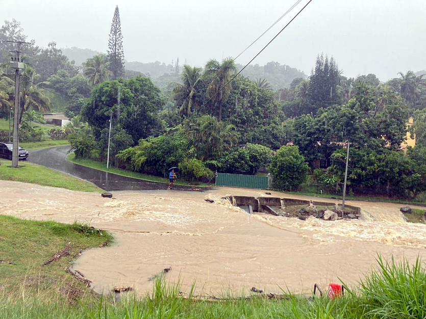 [10h20] Toujours sur la commune de Dumbéa, la route d'Auteuil est submergée.