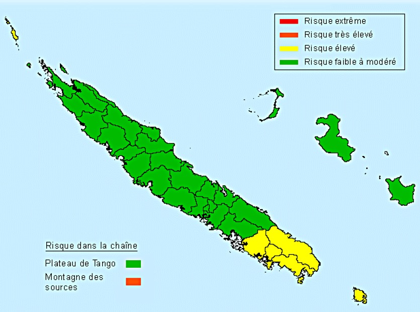 Les quatre communes du Grand Nouméa, Yaté, l’Île des Pins et Bélep sont placées en risque élevé. En niveau d’alerte jaune, la Sécurité civile recommande d’éviter tous les feux non domestiques.