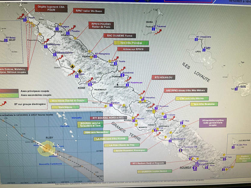 Les réseaux électriques des communes du Mont-Dore, de Nouméa, Thio, Bourail, Canala, Kaala-Gomen et Koumac sont impactés localement.