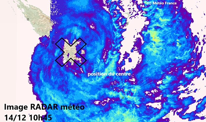 [10h00] Les vents se déchaînent sur la pointe Nord, indique Météo-France NC. Les vents peuvent souffler en rafales jusqu’à 150 voire 170 km/h près du centre de Ruby.
