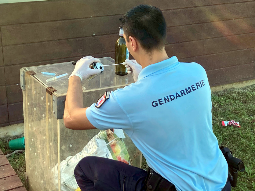 Des prélèvements ADN ont été réalisés sur des canettes de bière et une bouteille d’alcool trouvées sur place. Photo Baptiste GouretMERCI DE VOUS IDENTIFIER