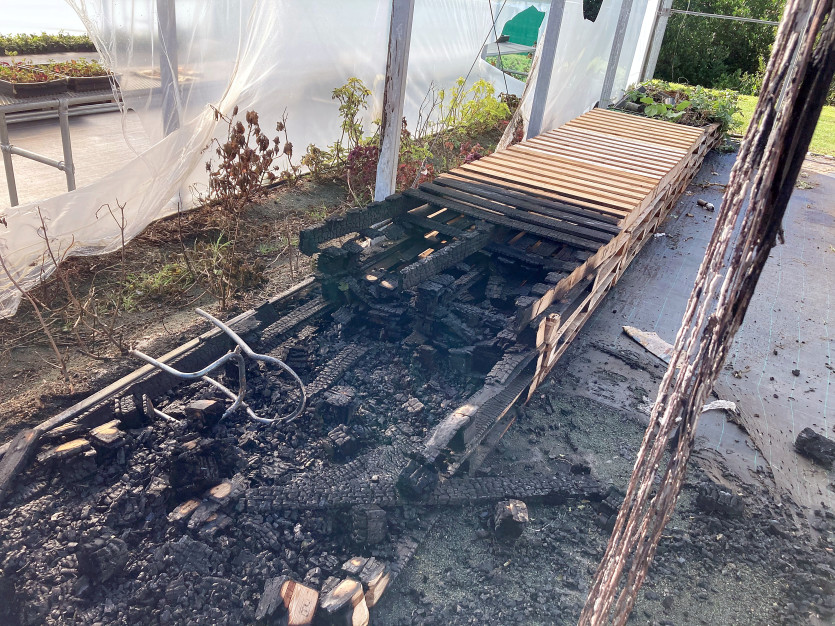Les palettes brûlées dans la serre pédagogique. Photo Baptiste Gouret