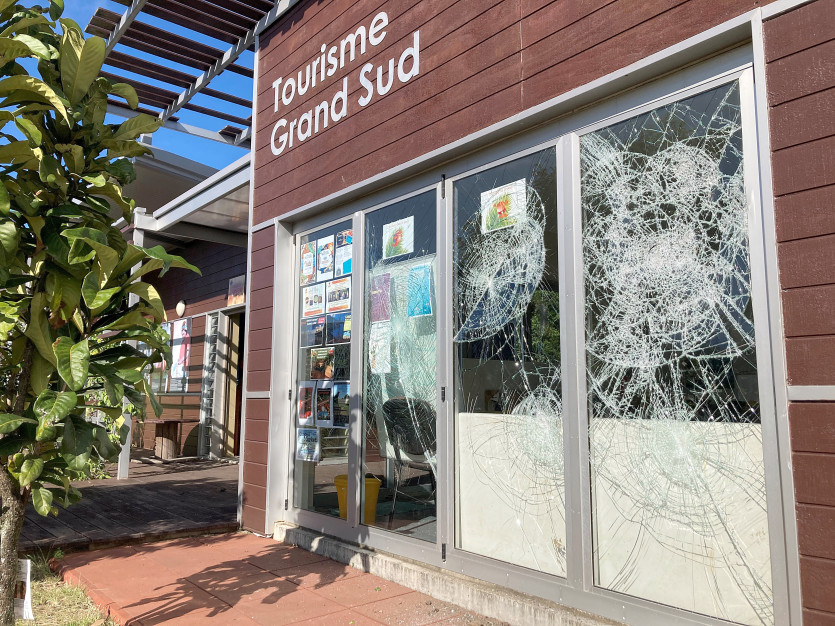 Situé dans le même ensemble que le centre, l’Office de tourisme du Grand Sud a lui aussi fait les frais de la violence du soir : toutes ses vitres ont été caillassées.