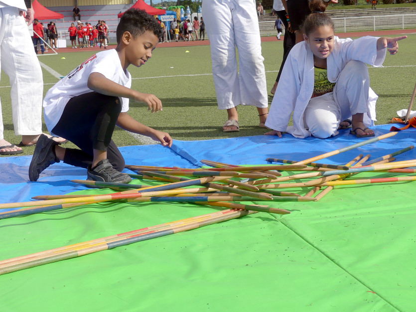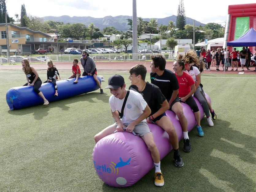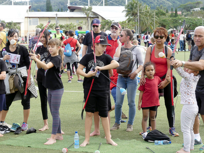 Sur le terrain du stade Victorin Boewa, des mini-jeux sont proposés toute la journée. Photo Baptiste Gouret