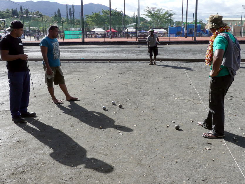 Un peu à l’écart de la foule, les boulistes profitaient du soleil pour quelques parties. Photo Baptiste Gouret