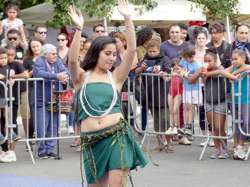 Des spectacles de danses traditionnelles se tiennent devant la salle Henri-Sérandour. Photo Baptiste Gouret