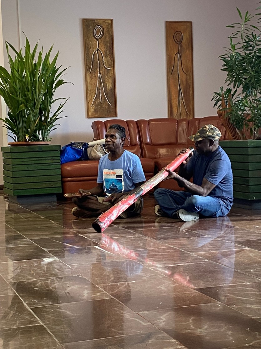 Ce soir, à 18h30, le consulat d'Australie propose un concert au kiosque à musique, avec trois musiciens aborigènes venus dans le cadre du programme "Indigenous Rangers", pour les gardes nature autochtone. Terrah Guymala, à droite sur la photo lors d'un concert à l'hôtel de la province Nord cette semaine, est garde nature et leader du groupe de rock aborigène Nabarlek, Neville Namrnyilk, à gauche, est musicien et artiste peintre. Ils seront accompagnés du musicien et producteur Michael Hohnen pour une performance mêlant musique et récit, "où le quotidien des rangers épousera les légendes de la Terre d'Arnhem et le son de la guitare et du didgeridoo". Arnhem est un territoire du Nord de l'Australie.