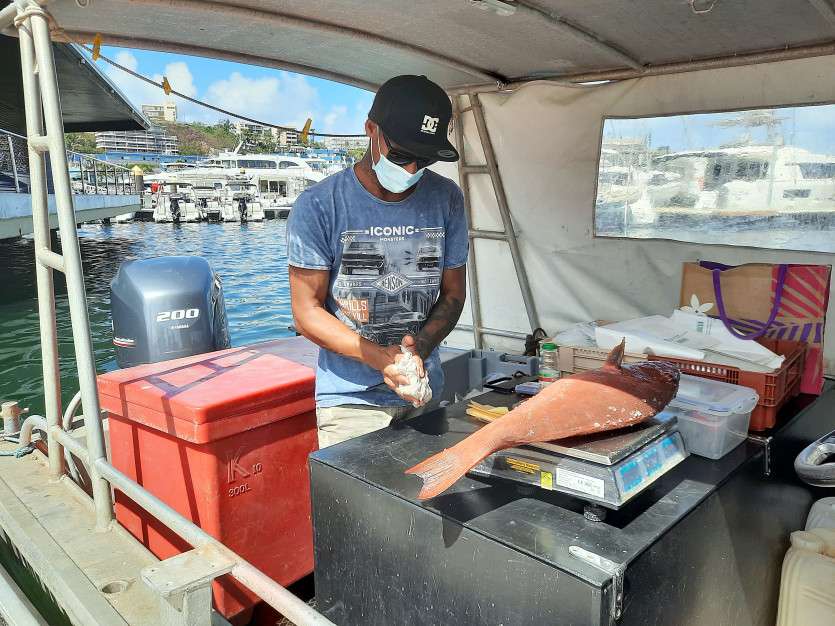 La Fédération des pêcheurs professionnels côtiers de la province Sud a obtenu l’autorisation d’installer un maximum de deux bateaux par matinée, du jeudi au dimanche, au quai situé à côté du marché de Port Moselle. Les poissons, lagonaires, sont non-grattés en raison des règles sanitaires.