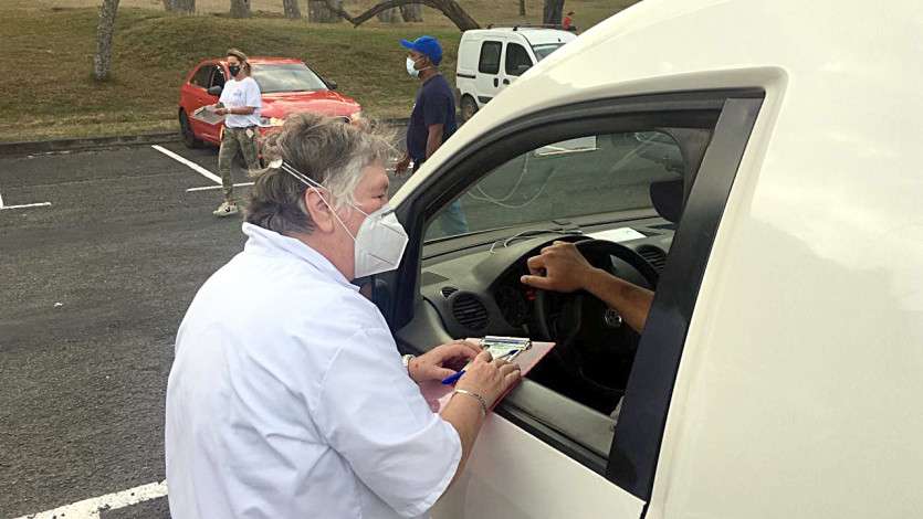 La première opération de vaccination "drive" du territoire devait être lancée à 16 heures. Elle a débuté un peu avant pour ne pas laisser attendre trop longtemps les premiers arrivés, notamment ce couple de Boulouparis, qui s'est présenté dès 14 heures. "On avait régulièrement des demandes depuis le début de la campagne de vaccination", voilà neuf mois, explique Patricia Pèdre, directrice adjointe de la Direction provinciale de l'action sanitaire et sociale. Notamment pour les personnes qui ont du mal à se déplacer. "Il nous arrivait d'aller jusqu'aux voitures mais au coup par coup", quand les soignants avaient le temps de se déplacer. Là, une équipe est dédiée au drive. Des agents accueillent les automobilistes et les guident pour se garer puis les professionnels de santé prennent le relais. Ils s'assurent notamment que les patients n'ont pas d'antécédents allergiques. Si c'est le cas, ils sont orienté vers le vaccinodrome, où ils pourront intervenir plus facilement en cas de besoin.