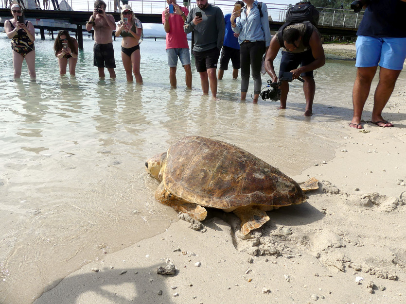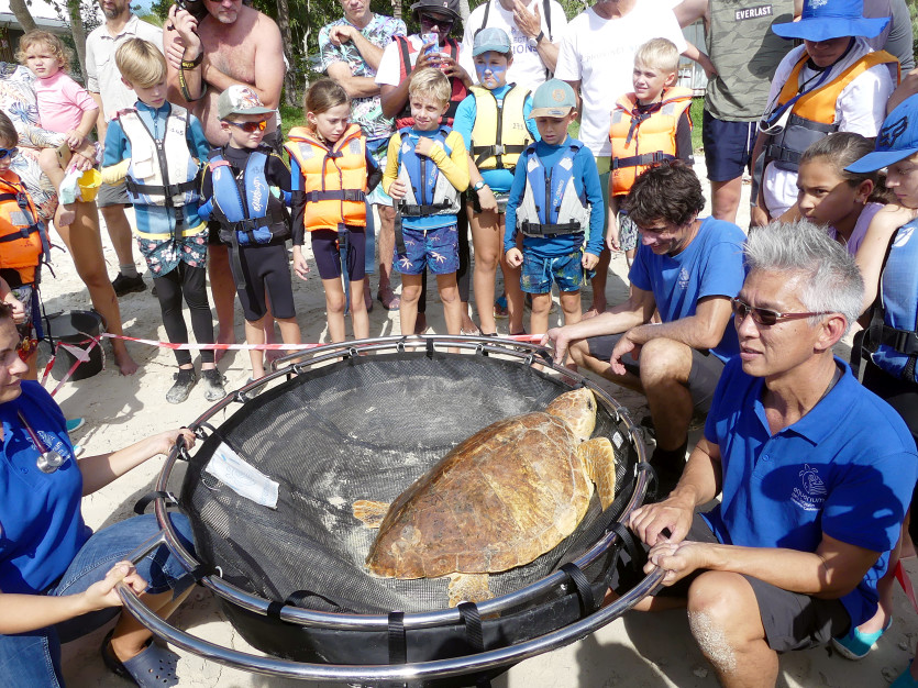 C’est une belle histoire qui s’est achevée ce mercredi. L’Aquarium des Lagons a relâché en mer une tortue grosse tête découverte le 10 juin par le club d’activités nautiques de la province Sud en baie de Sainte-Marie, victime de braconnage.