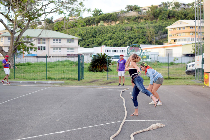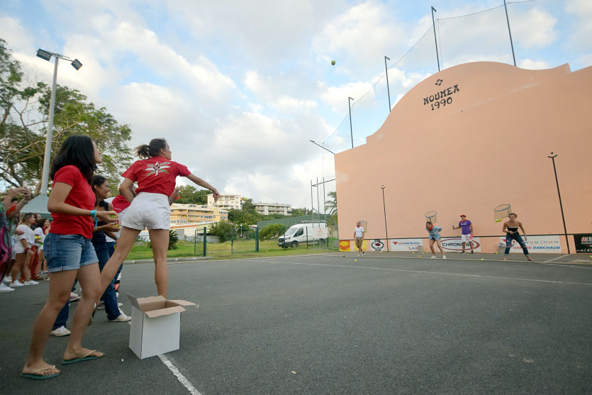 Ou le jeu du panier. Photo Cécile RubichonEn réalité, sur les treize défis lancés aux douze équipes, un seul se pratique toujours : le tir à la corde. Les autres sont des inventions locales. Comme le jeu du panier, qu'il fallait porter dans le dos et remplir d'un maximum de balles de tennis lancées par les coéquipiers.