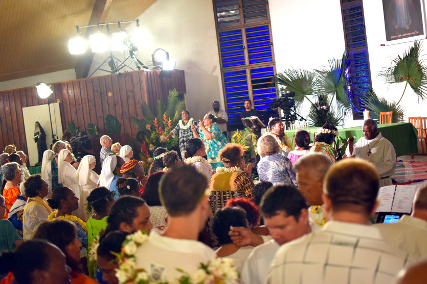 Un peu stressante parce qu’il a fallu apprendre des chants et des prières en différentes langues, celles de Maré, Ouvéa, Hienghène, une des Antilles, en wallis, tahitien… Des langues qui sont celles des paroissiens. Chanteurs, musiciens, lecteurs et autres bénévoles se préparent depuis un mois et demi. Plus en réalité puisque l’émission devait initialement être tournée en 2019. "On a mis tout notre cœur, ça a été unique, vraiment beau", constate Michelle, choriste. "Impressionnant", résume l’équipe de tournage de l’émission. Comme les gens qu’ils ont rencontrés. "C’est possible de vivre ensemble, c’est ce que dit la Calédonie, l’accueil qu’on y a reçu, cette paroisse", choisie pour "son dynamisme et sa diversité culturelle".