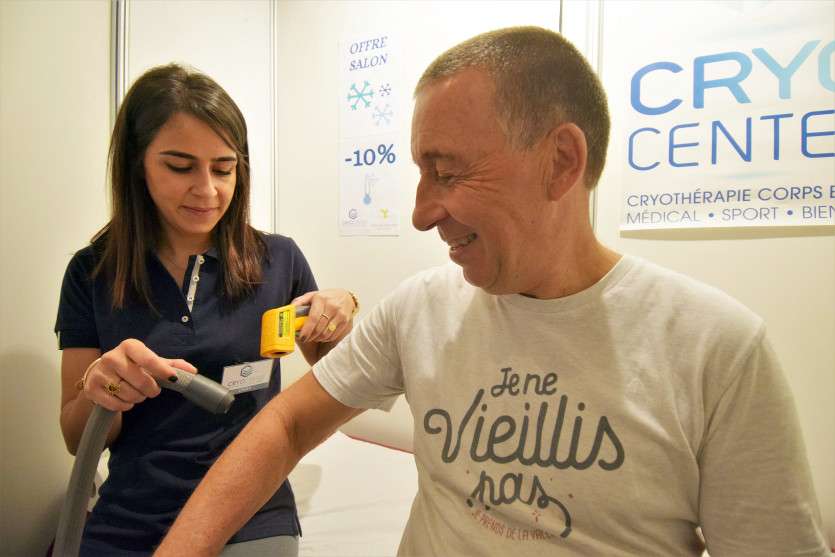 - J.J. | Crée le 12.06.2021 à 14h35 | Mis à jour le 12.06.2021 à 15h35ImprimerParmi les nouveautés présentées cette année, la cryothérapie (soin par le froid), a piqué la curiosité de nombreux visiteurs. Photo J.J.Une cinquantaine d’exposants sont présents à l’hôtel Le Nouvata jusqu’à 18 heures ce soir, et demain, dimanche, toute la journée, pour faire découvrir les innovations bien-être locales au public.