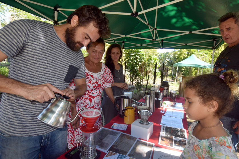 L’atelier "Café maison" de l’Atelier des alchimistes, pour en apprendre plus sur la culture et la transformation du café par les particuliers, a attiré la foule ce matin. Photo Joanna JullienMERCI DE VOUS IDENTIFIER