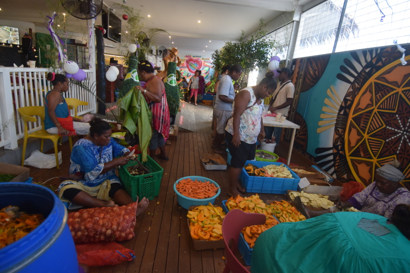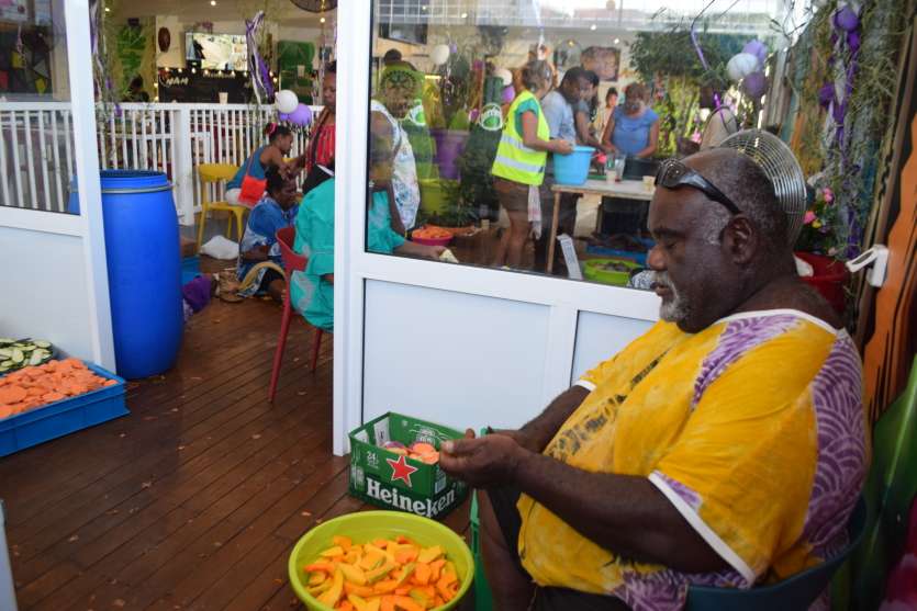 Mamans du quartier, de la place Constantine, ou bonne âmes ayant vu l’appel relayé sur les réseaux sociaux, sont venus donner la main pour la confection des bougnas. Photo Joanna JullienLancée l’année dernière par Claude Siret, le gérant du Snack Nam, qui a servi ce matin d’atelier pour l’épluchage de kilos de bananes, patates, ignames et autres dons alimentaires, l’opération Bougna du cœur va permettre d’offrir « un Noël digne de ce nom aux plus démunis ».