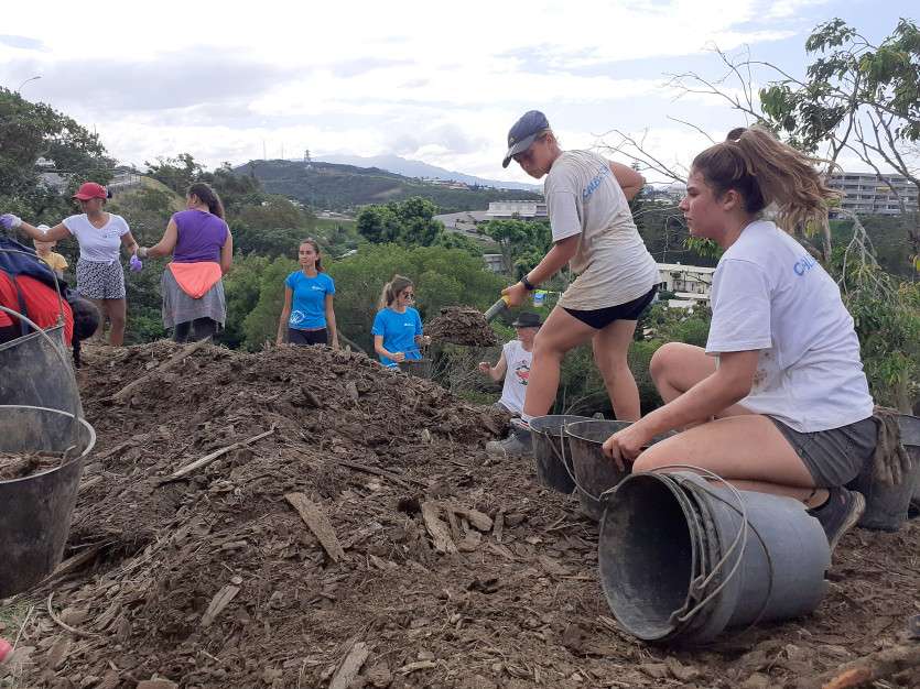 - A.-C.P. | Crée le 19.04.2021 à 12h05 | Mis à jour le 19.06.2021 à 12h05ImprimerDes participants à la plantation remplissent les seaux de paillage qui est ensuite disposé autour des arbres. Photo A.-C.P.La plantation de 1 000 arbres de forêt sèche ce matin marque la reprise de l'activité sur la colline de la FOL, dont l'ancien bâtiment a été démoli fin 2019.