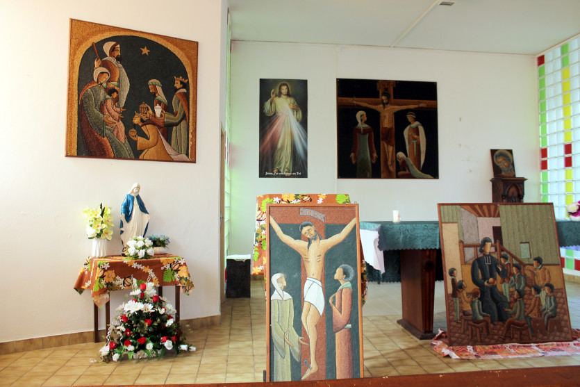 Les œuvres du père Teppaz à la chapelle du collège Sainte-Marie. Photo Edwige BlanchonMERCI DE VOUS IDENTIFIER
