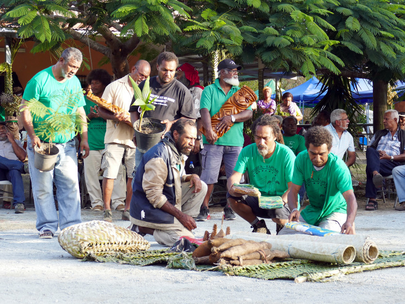 Juste avant la passation, la préparation de la coutume. Photo G.C.Avec sa désignation s’est achevé le XXIe Congrès du pays kanak, qui a vu les coutumiers travailler pendant deux jours sur l’avenir de l’institution. Une commission se penchera prochainement sur le mode de désignation des sénateurs, qui pourrait se faire au moyen d’un vote.