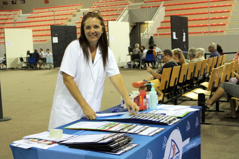 - Edwige Blanchon | Crée le 09.06.2021 à 11h45 | Mis à jour le 09.06.2021 à 12h19ImprimerEnviron 450 personnes sont attendues aujourd’hui au centre de vaccination à l’Arène du sud. Photo Edwige BlanchonOuvert depuis 8h30 ce matin, le centre de vaccination accueille toutes les personnes qui souhaitent se faire vacciner contre la Covid-19, aujourd’hui jusqu’à 16h30, à l’Arène du sud.