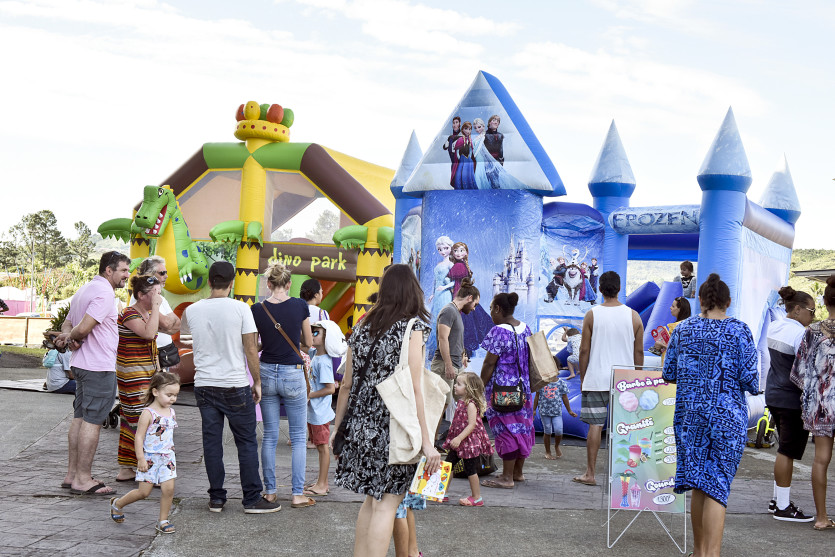 Une petite pause dans les châteaux gonflables a été la bienvenue pour les nombreuses familles venues à Païta. Photo Nicolas Petit