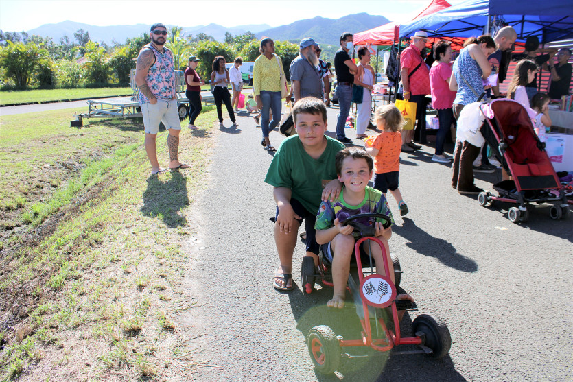 Venus pour aider leur mère dans la vente de leur vide-greniers, Gabriel et Benjamin ont réussi à dénicher un mini-kart, dans l'un des stands voisins. Photo Nikita Hoffmann