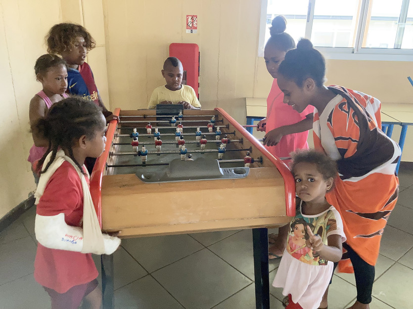 Les familles en profitent pour prendre des nouvelles et se changer les idées. Photo Anthony TejeroCe mardi matin, vers 10 heures, une quarantaine d’habitants, dont de nombreux enfants, avaient déjà trouvé refuge (depuis la veille pour certains) à l’internat du collège Laura Boula, de Wé. "On s’attend à avoir encore du monde au fur et à mesure que le temps s'empire. Les gens attendent souvent la dernière minute et les premiers vents forts, explique Benjamin Hanyé, le directeur de la structure, qui a prêté son propre logement pour que les gens puissent cuisiner leur repas. Les familles s’organisent elles-mêmes et une solidarité se crée vite entre elles. "