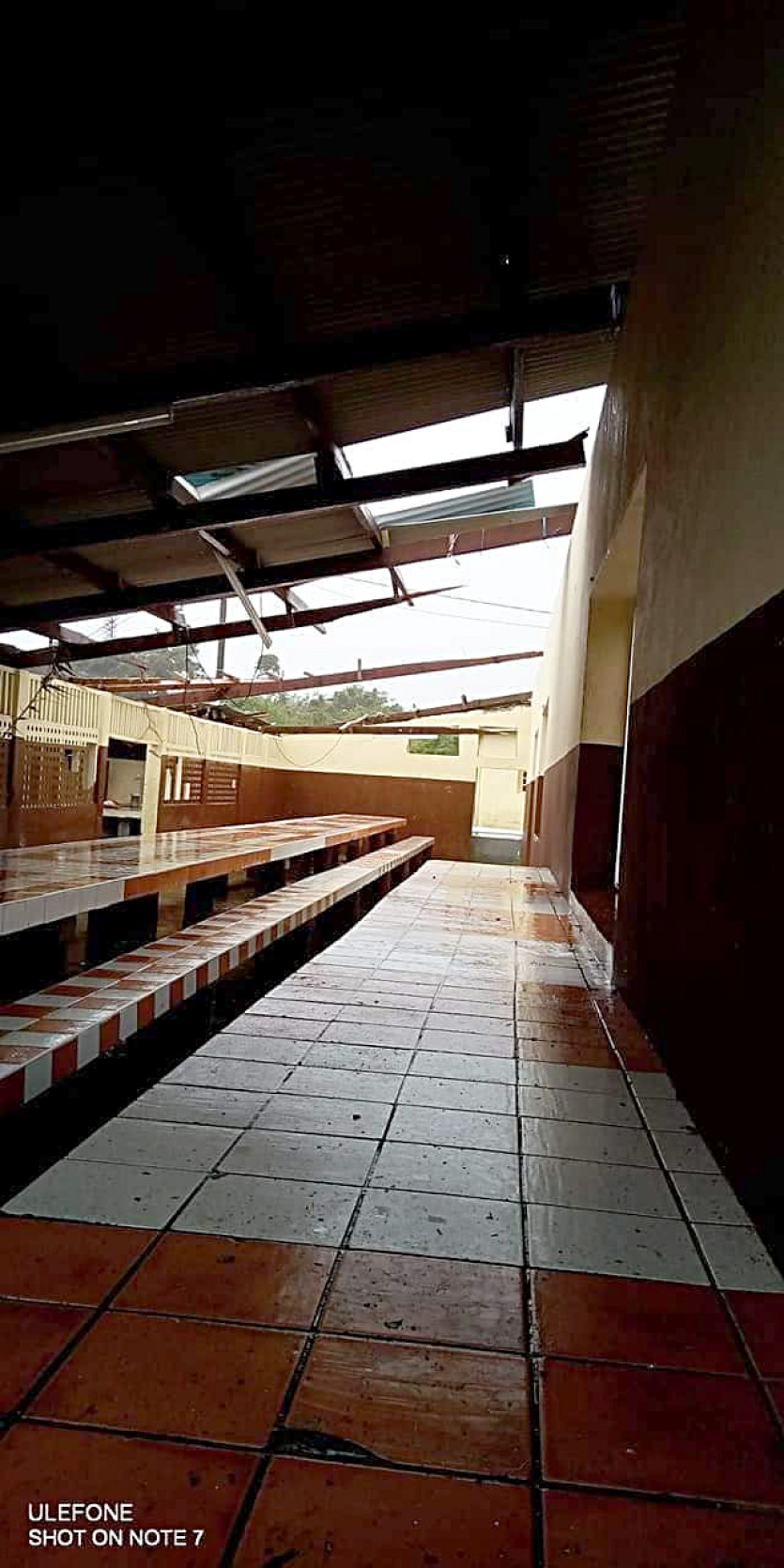 Le toit de la maison commune de Hnathalo a été arraché. Photo DRPlus d’informations à venir sur notre site.