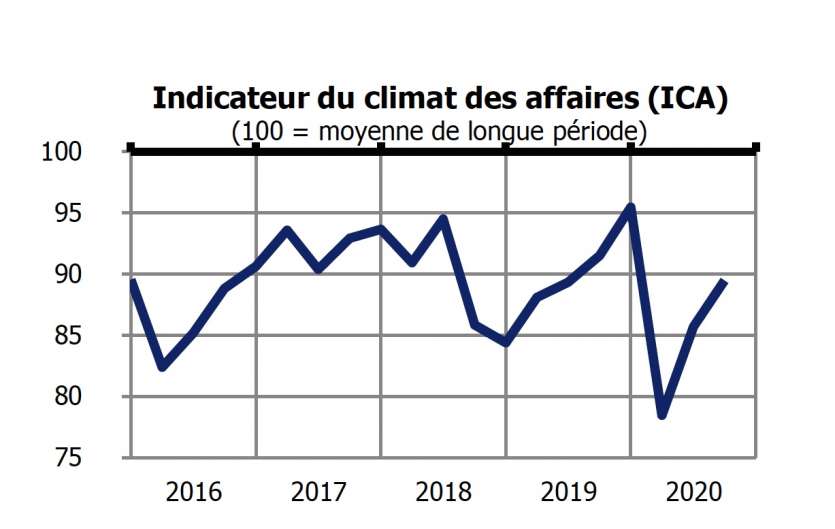 - | Crée le 01.12.2020 à 11h41 | Mis à jour le 01.12.2020 à 14h14ImprimerL'indice du climat des affaires traduit une amélioration du moral des chefs d'entreprise au cours des derniers mois. Infographie IEOMECONOMIE. « Affaiblie mais résiliente, l’économie calédonienne est déjà tournée vers 2021 », estime l’Institut d’émission d’outre-mer (IEOM), qui a publié ce mardi matin son Indice du climat des affaires du 3e trimestre.