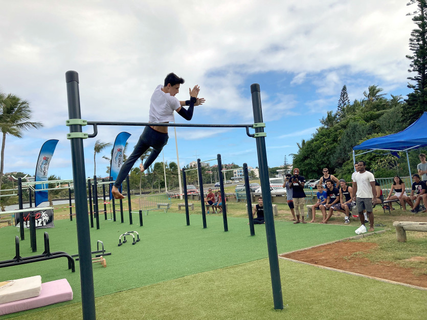- Baptiste Gouret | Crée le 03.04.2022 à 14h35 | Mis à jour le 03.04.2022 à 14h35ImprimerL’association Wild Barz organise sa première compétition de work out ce dimanche après-midi. Photo Baptiste GouretLa première compétition de l’association Wild Barz a actuellement lieu sur les agrès de la promenade Vernier, à Sainte-Marie. Une vingtaine d’amateurs de workout s’y affrontent jusqu’en fin de journée.