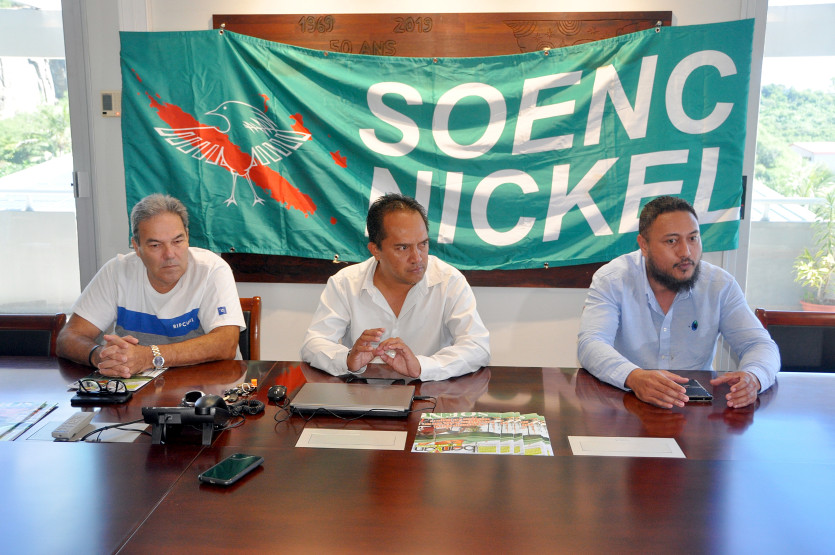 - Yann Mainguet | Crée le 22.04.2022 à 13h30 | Mis à jour le 22.04.2022 à 13h32ImprimerEddy Coulon, Pierre Tuiteala et Alexis Falematagia, du Soenc Nickel, viennent de s’exprimer en conférence de presse sur le chantier Lucy. Photo Yann MainguetLe syndicat "n’est pas contre l’arrivée de 300 salariés indiens" sur le chantier Lucy, mais condamne "l’absence d’explications" de Prony Resources NC.