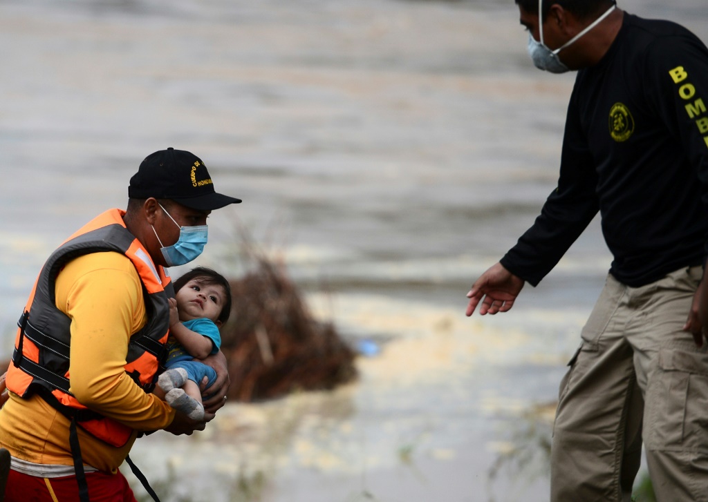 - © 2020 AFP | Crée le 08.11.2020 à 10h43 | Mis à jour le 08.11.2020 à 10h45ImprimerDes pompiers secourent des habitants après le passage de l'ouragan Eta dans le département de Yoro, à 240 kms au nord de Tegucigalpa, Honduras, le 7 novembre 2020 Orlando SIERRA-AFP