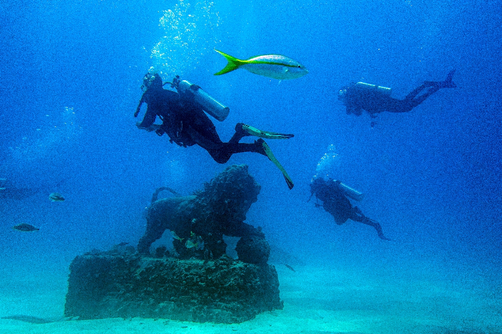- Des plongeurs équipés de leur bouteille d'air comprimé progressent en palmant, entourés de poissons colorés et d'une raie. Une fois le fond marin atteint, ils tombent nez à nez avec les colonnes et les arcs d'un cimetière pour les amoureux de l'océan, un site qui regorge de vie aquatique.Il vous reste 89% de l'article à découvrir.Cet article est réservé aux abonnés.